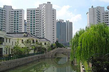 位于蘇州市新區(qū)的錦麗苑,由10幢多層住宅,一座商住樓和7套別墅組成??倶敲婷娣e約為5.9萬平方米,于2004年落成。